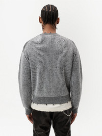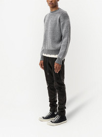 ribbed-knit crewneck jumper black merino wool ribbed knit crew neck drop shoulder long sleeves frayed detailing ribbed detailing Made in United States Composition Merino 100%