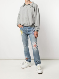 The Kane distressed jeans light blue cotton tie-dye print faded effect belt loops front button and zip fastening classic five pockets full-length Imported Composition Cotton 100% SIZE & FIT Model measurements Height 6 ft 2 in(1.88 m) Bust/Chest 38.18 in(97 cm) Hips 37 in(94 cm) Waist 29.92 in(76 cm) Washing instructions Machine Wash
