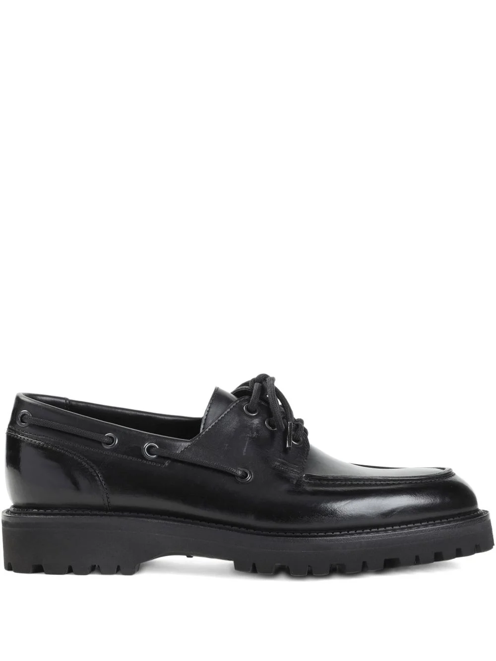 Tide lace-up leather boat shoes Highlights - Black - Leather construction - Lace-up fastening - Lug sole - Eyelet detailing Made in United Kingdom Composition Outer: Calf Leather 100% Lining: Calf Leather 100% Sole: Rubber 100%