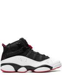 6 Rings "Wht/Blk/Red" sneakers Highlights - Black/white - Faux leather - Signature jumpman motif - Round toe - Front lace-up fastening - Side touch-strap fastening - Logo patch at the tongue - Pull-tab at the heel - Branded insole - Rubber sole - These styles are supplied by a premium and authenticated sneaker marketplace. stocking only the most sought-after footwear, they source and curate some of the most hard to find sneakers from around the world. Imported Composition Leather 100%