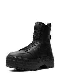 Air Jordan 1 Brooklyn boots Nike's Air Jordan 1 Brooklyn sneaker boots combine a full-grain leather construction with a chunky platform sole for an eye-catching look. Here, they're presented in a monochromatic colourway, while the Swoosh logo appears on the sides - as usual of the brand. Highlights - Black - Leather - Signature swoosh logo detail - Round toe - Front lace-up fastening - Logo patch at the tongue - Pull-tab at the heel - Chunky rubber sole Imported Composition Leather 100%