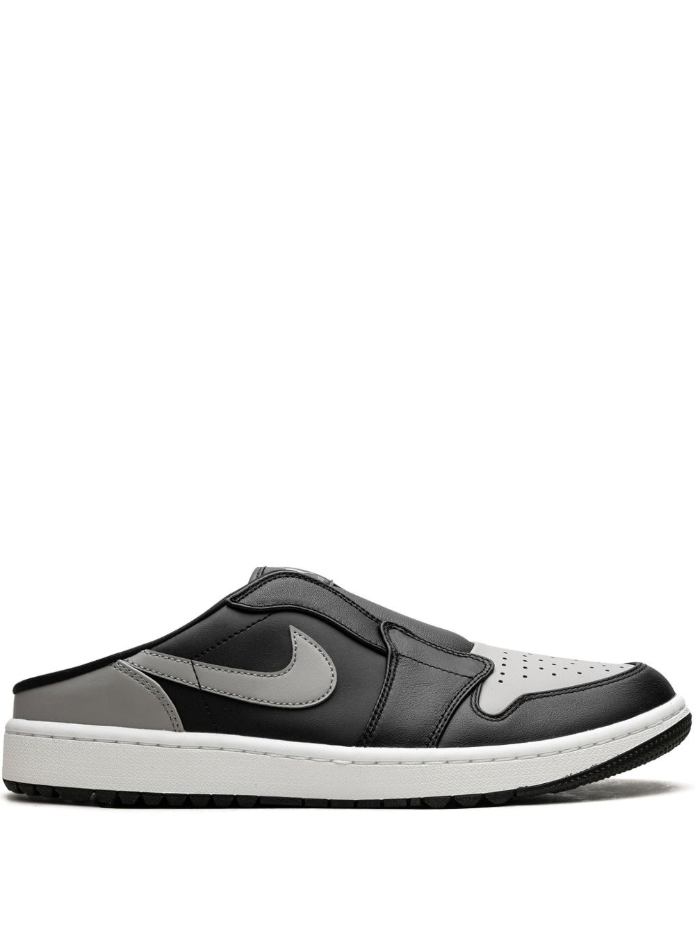 Air Jordan 1 Golf "Black/White/Medium Grey" sneakers Highlights - Black - Calf leather - Slip-on style - Two-tone design - Signature swoosh logo detail - Signature jumpman motif - Perforated toebox - Round toe - Branded insole - Flat rubber sole - These styles are supplied by a premium and authenticated sneaker marketplace. stocking only the most sought-after footwear, they source and curate some of the most hard to find sneakers from around the world. Imported Composition Outer: Calf Leather 100% Sole: Rubber 100% Lining: Fabric 100%