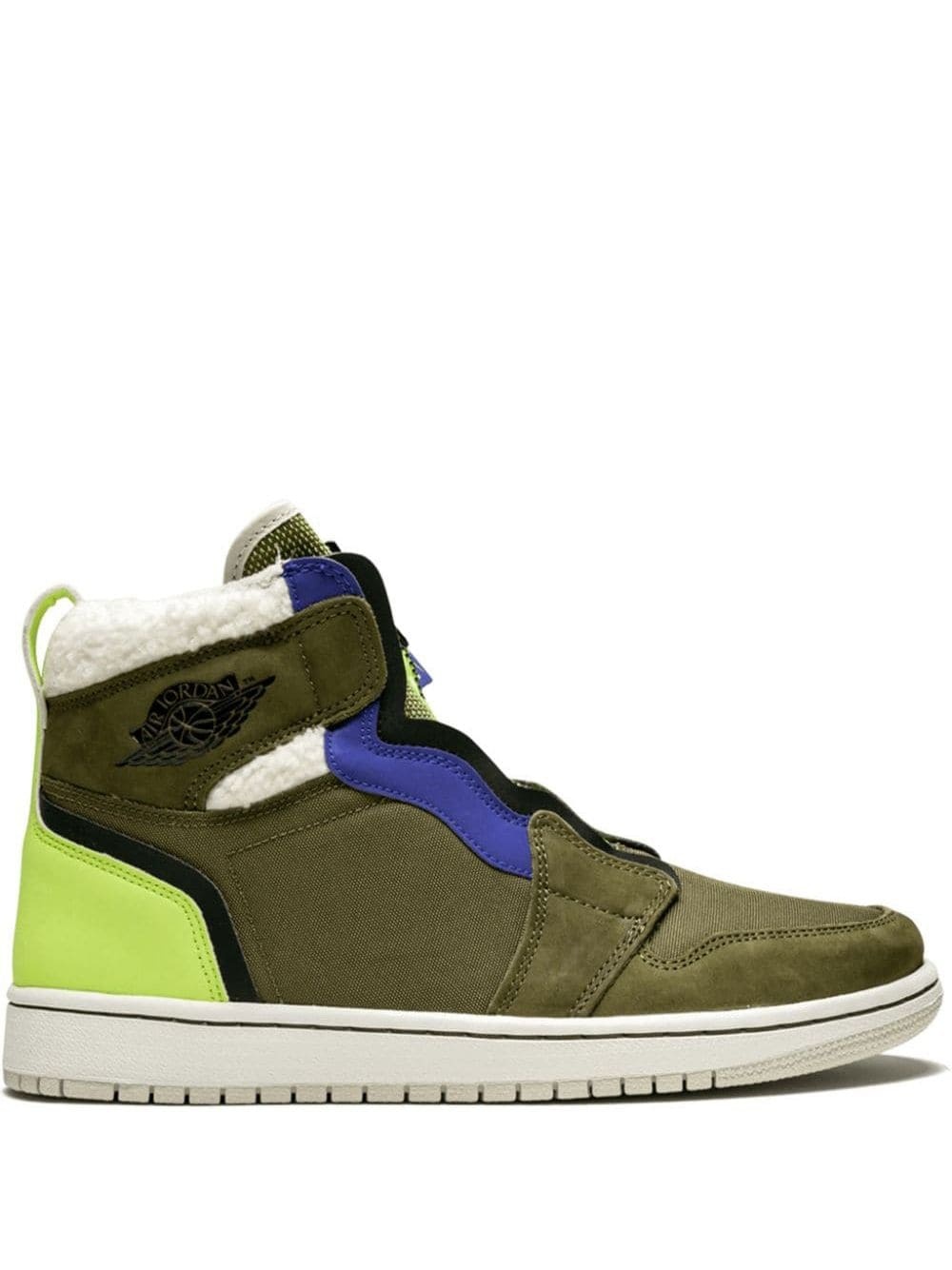 Air Jordan 1 High Zip Up sneakers Olive, black and voltglow WMNS Air Jordan 1 High ZIP UP sneakers from jordan featuring a front zip fastening, a round toe and a ridged rubber sole. Imported Composition Outer: Leather 100%, Canvas 100% Sole: Rubber 100% Lining: Polyester 100%