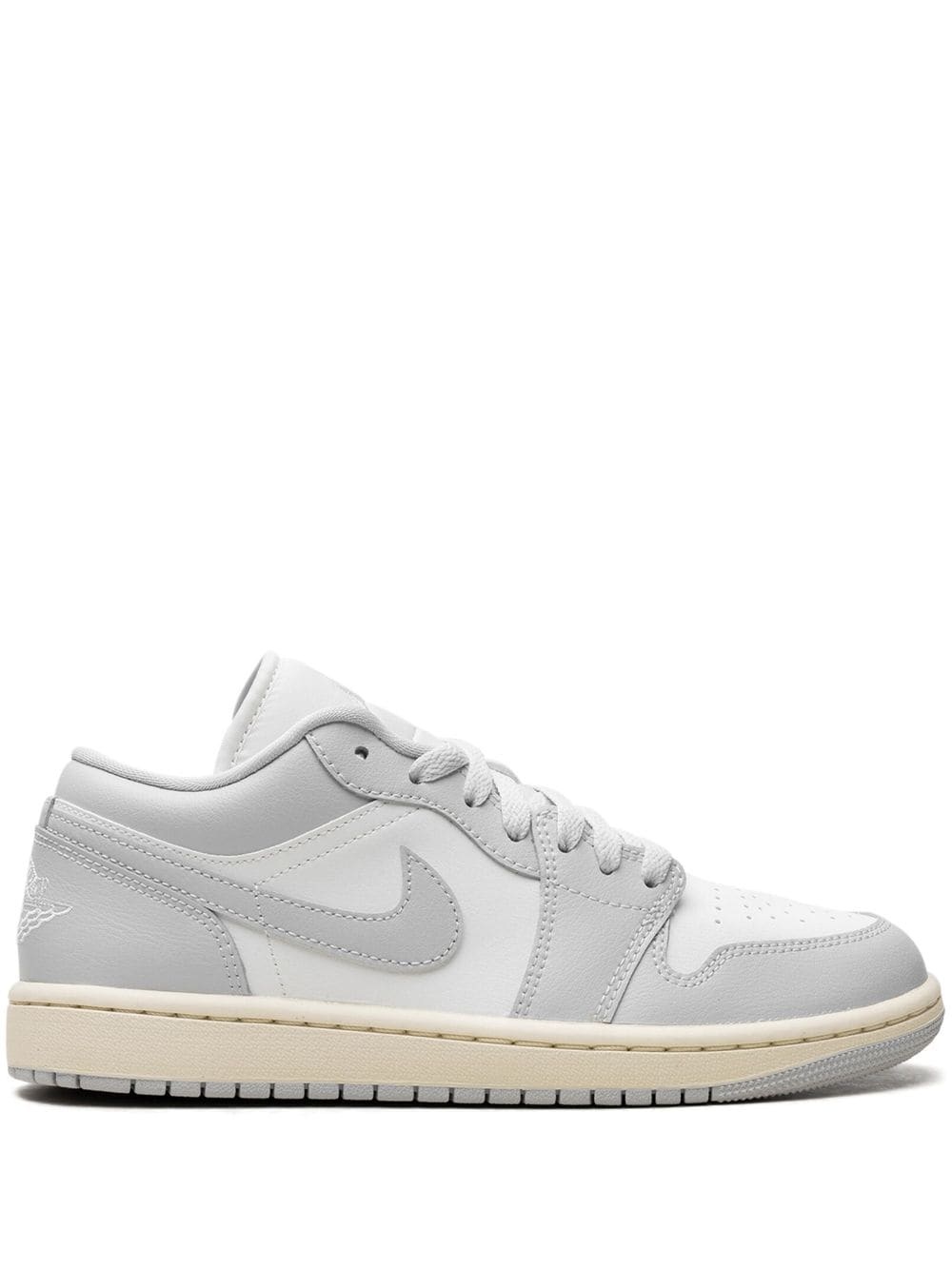 Air Jordan 1 "Light Grey" sneakers Highlights - Light grey/white - Calf leather - Front lace-up fastening - Signature air jordan wings logo - Signature swoosh logo detail - Signature jumpman logo patch at the tongue - Perforated toebox - Round toe - Signature air cushioning - Flat rubber sole - These styles are supplied by a premium and authenticated sneaker marketplace. stocking only the most sought-after footwear, they source and curate some of the most hard to find sneakers from around the world. Imported Composition Leather 100% SIZE & FIT FittingInformation This piece fits small – take one size up