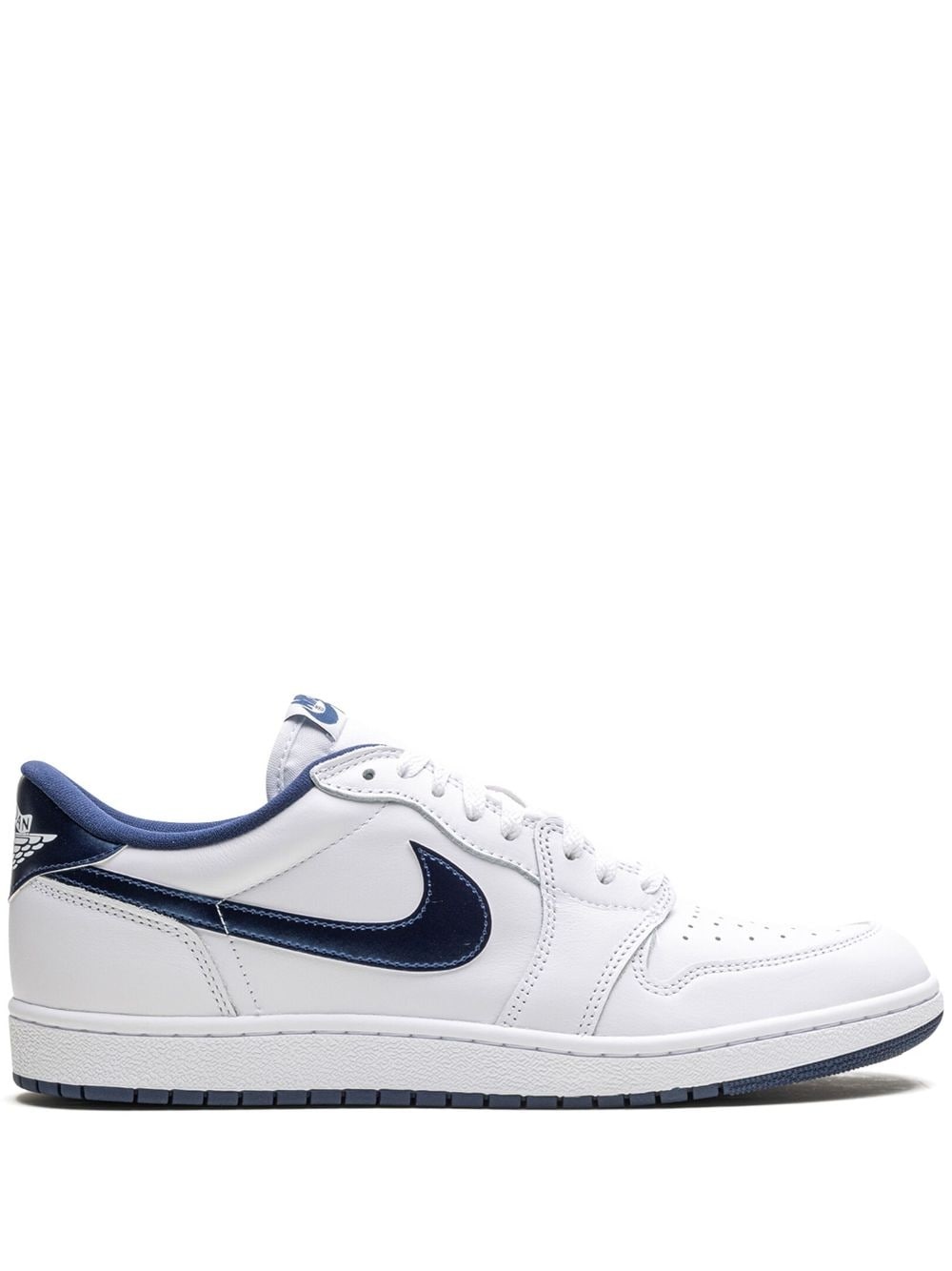 Air Jordan 1 Low 85 "Metallic Navy" sneakers The Air Jordan 1 Low 85 'Metallic Navy' sneakers are crafted from white leather with the signature Swoosh logo on the side in a contrasting blue overlay. The Wings logo decorates the heel counter, while a rubber sole adds comfort and traction to the design. Highlights - White - Navy blue - Leather - Signature swoosh logo detail - Signature air jordan wings logo - Round toe - Front lace-up fastening - Logo patch at the tongue - Branded insole - Rubber sole - These styles are supplied by a premium and authenticated sneaker marketplace. stocking only the most sought-after footwear, they source and curate some of the most hard to find sneakers from around the world. Imported Composition Sole: Rubber 100% Lining: Fabric 100% Outer: Leather 100%