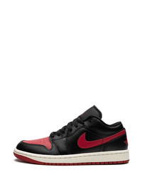 Air Jordan 1 Low "Bred Sail" sneakers Released in 1985, the Air Jordan 1 Low stands out for its bold colour-blocking design. This iteration comes in a black and red leather construction enhanced with different branded accents - including the signature Swoosh, Air Jordan Wings and Jumpman logos. Underfoot, a rubber outsole completes the look. Highlights - Black/red - Calf leather - Signature swoosh logo detail - Signature air jordan wings logo - Signature jumpman motif - Round toe - Front lace-up fastening - Branded insole - Rubber sole - These styles are supplied by a premium sneaker marketplace. stocking only the most sought-after footwear, they source and curate some of the most hard to find sneakers from around the world. Imported Composition Leather 100% SIZE & FIT FittingInformation This piece fits small – take one size up