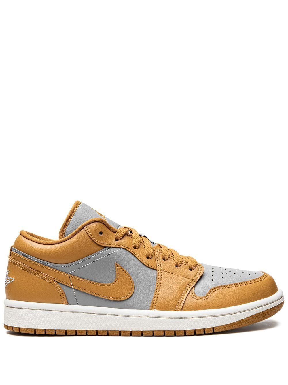 Air Jordan 1 Low "Chutney" sneakers Jordan offers a wearable take on the Air Jordan 1 Low with the "Chutney". In grey and soft orange hues, it is detailed with the iconic Swoosh logo and Wings motif and finished with the Jumpman at the tongue. Highlights - Grey/orange - Calf leather - Panelled design - Signature swoosh logo detail - Signature jumpman motif - Signature air jordan wings logo - Perforated - Round toe - Front lace-up fastening - Rubber sole - Signature air cushioning - Release date: october 31, 2022 - These styles are supplied by a premium sneaker marketplace. stocking only the most sought-after footwear, they source and curate some of the most hard to find sneakers from around the world. Imported Composition Leather 100% SIZE & FIT FittingInformation This piece fits small – take one size up