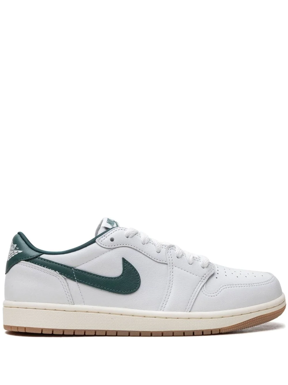 Air Jordan 1 Low "Oxidized Green" sneakers Highlights - White/dark green - Leather - Front lace-up fastening - Contrasting branded heel counter - Signature air jordan wings logo - Signature swoosh logo detail - Logo patch at the tongue - Perforated toebox - Round toe - Branded insole - Signature air cushioning - Rubber outsole - These styles are supplied by a premium and authenticated sneaker marketplace. stocking only the most sought-after footwear, they source and curate some of the most hard to find sneakers from around the world. Imported Composition Leather 100%
