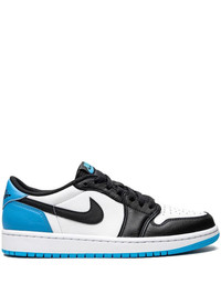 Air Jordan 1 Low "UNC" sneakers The Air Jordan 1 Retro Low OG is an update of Michael Jordan’s first signature shoe. These low-top sneakers feature a predominantly white colour highlighted with blue accents and black-hued Wings and Swoosh logos - a design that was not on the original Air Jordan 1 Low from 1985. Highlights - Black/white/blue - Leather - Signature swoosh logo detail - Perforated - Panelled design - Signature air jordan wings logo - Logo patch at the tongue - Round toe - Front lace-up fastening - Rubber sole - Signature air cushioning - These styles are supplied by a premium sneaker marketplace. stocking only the most sought-after footwear, they source and curate some of the most hard to find sneakers from around the world. Imported Composition Leather 100%