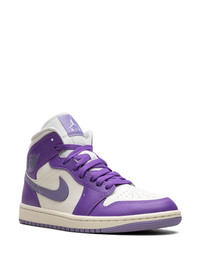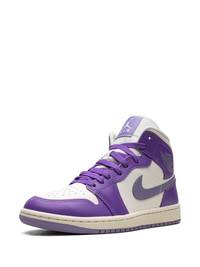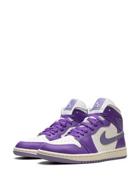 Air Jordan 1 Mid "Action Grape" sneakers The Air Jordan 1 Mid 'Action Grape' sneakers by Jordan Brand are enhanced with purple panels. Crafted from smooth leather, the pair features a classic high-top silhouette enhanced by a Swoosh logo and a Wings insignia on the sides. Underneath, a two-toned rubber sole completes the design. Highlights - Purple/white - Calf leather - Signature swoosh logo detail - Signature air jordan wings logo - Round toe - Front lace-up fastening - Logo patch at the tongue - Branded insole - Rubber sole - These styles are supplied by a premium sneaker marketplace. stocking only the most sought-after footwear, they source and curate some of the most hard to find sneakers from around the world. Imported Composition Leather 100% SIZE & FIT FittingInformation This piece fits small – take one size up