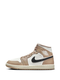 Air Jordan 1 Mid "Desert" sneakers And Jordan strikes again - in a new colourway. In a beige, white and black colourway, these Air Jordan 1 sneakers stand out thanks to their mid-top silhouette, contrasting Air Jordan Wings logo to the side, and Jumpman patch at the tongue. They are completed by the usual two-toned rubber sole for a stylish yet comfortable look. Highlights - Beige/white/black - Leather - Smooth grain - Signature swoosh logo detail - Signature air jordan wings logo - Signature jumpman logo patch at the tongue - Colour-block panelled design - Round toe - Perforated toebox - Front lace-up fastening - Rubber outsole - These styles are supplied by a premium sneaker marketplace. stocking only the most sought-after footwear, they source and curate some of the most hard to find sneakers from around the world. Imported Composition Leather 100% SIZE & FIT FittingInformation This piece fits small – take one size up