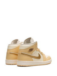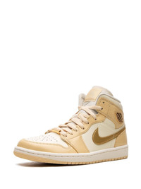 Air Jordan 1 Mid "Pale Vanilla / Coconut Milk / Sail / Metallic Gold" sneakers The Air Jordan 1 Mid "Pale Vanilla / Coconut Milk / Sail / Metallic Gold" sneakers are sculpted to a basketball-inspired high-top silhouette. The signature Swoosh logo accents the sides, while underfoot a rubber sole adds comfort and traction to the design. Highlights - Beige/cream white/gold-tone - Leather - Signature swoosh logo detail - Signature air jordan wings logo - Perforated toebox - Round toe - Front lace-up fastening - Logo patch at the tongue - Flat rubber sole - These styles are supplied by a premium sneaker marketplace. stocking only the most sought-after footwear, they source and curate some of the most hard to find sneakers from around the world. Imported Composition Leather 100%