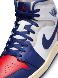 Air Jordan 1 Mid "Rare Air" sneakers Highlights - White - Blue and red panelling - Perforated toe box - Nike swoosh - Off-white sole - These styles are supplied by a premium and authenticated sneaker marketplace. stocking only the most sought-after footwear, they source and curate some of the most hard to find sneakers from around the world. Imported Composition Sole: Rubber 100% Outer: Calf Leather 100% Lining: Fabric 100%