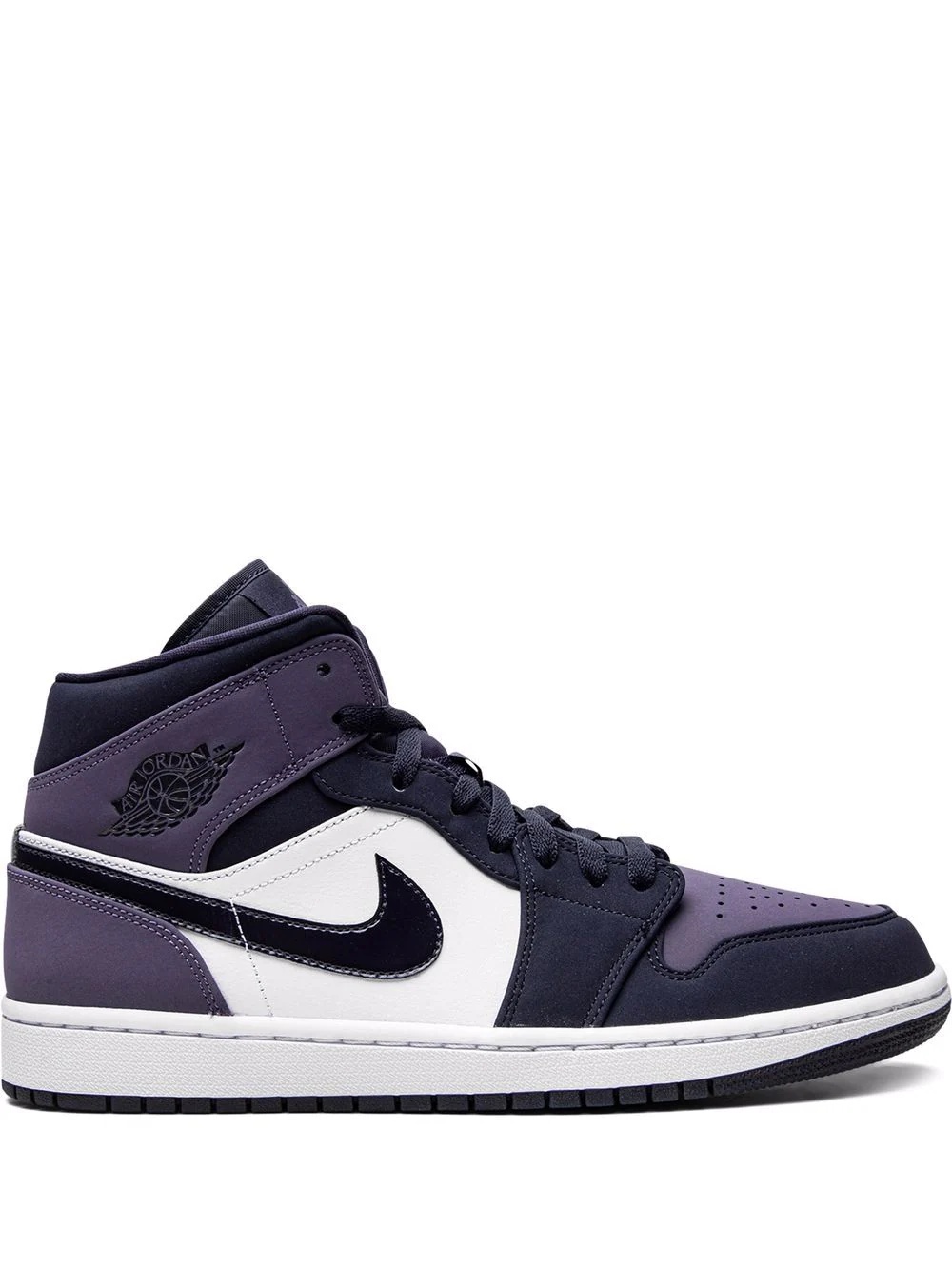 Air Jordan 1 Mid "Sanded Purple" sneakers Always fresh and timeless, the Air Jordan 1 Mid is one of the most iconic sneakers of all time. This version of Michael Jordan's signature silhouette channels a fresh yet classic colourway, consisting of contrasting obsidian black, sanded purple and white panels for a timeless touch. Made in Italy Composition Leather 100%