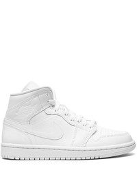 Air Jordan 1 Mid "Triple White 2022" sneakers A heritage style, the Air Jordan 1 Mid is presented in a white colourway here. Featuring the signature Swoosh logo and a supportive ankle-length construction, this Jordan pair offers a sleek and eye-catching design. Highlights - White - Calf leather - Signature swoosh logo detail - Signature air jordan wings logo - Round toe - Front lace-up fastening - Logo patch at the tongue - Ankle-length - Branded insole - Rubber sole - These styles are supplied by a premium sneaker marketplace. stocking only the most sought-after footwear, they source and curate some of the most hard to find sneakers from around the world. Imported Composition Leather 100%
