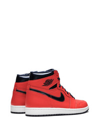 Air Jordan 1 Retro High OG "David Letterman" sneakers Inspired by the warm-up suit a young Michael Jordan wore during his appearance on the Late Show with David Letterman in 1985, where he discussed his first signature shoe, this Air Jordan 1 features a bright red upper with navy accents. Special “On Air” graphics are found on the insole. Imported Composition Outer: Calf Leather 100% Lining: Calf Leather 100% Sole: Rubber 100%