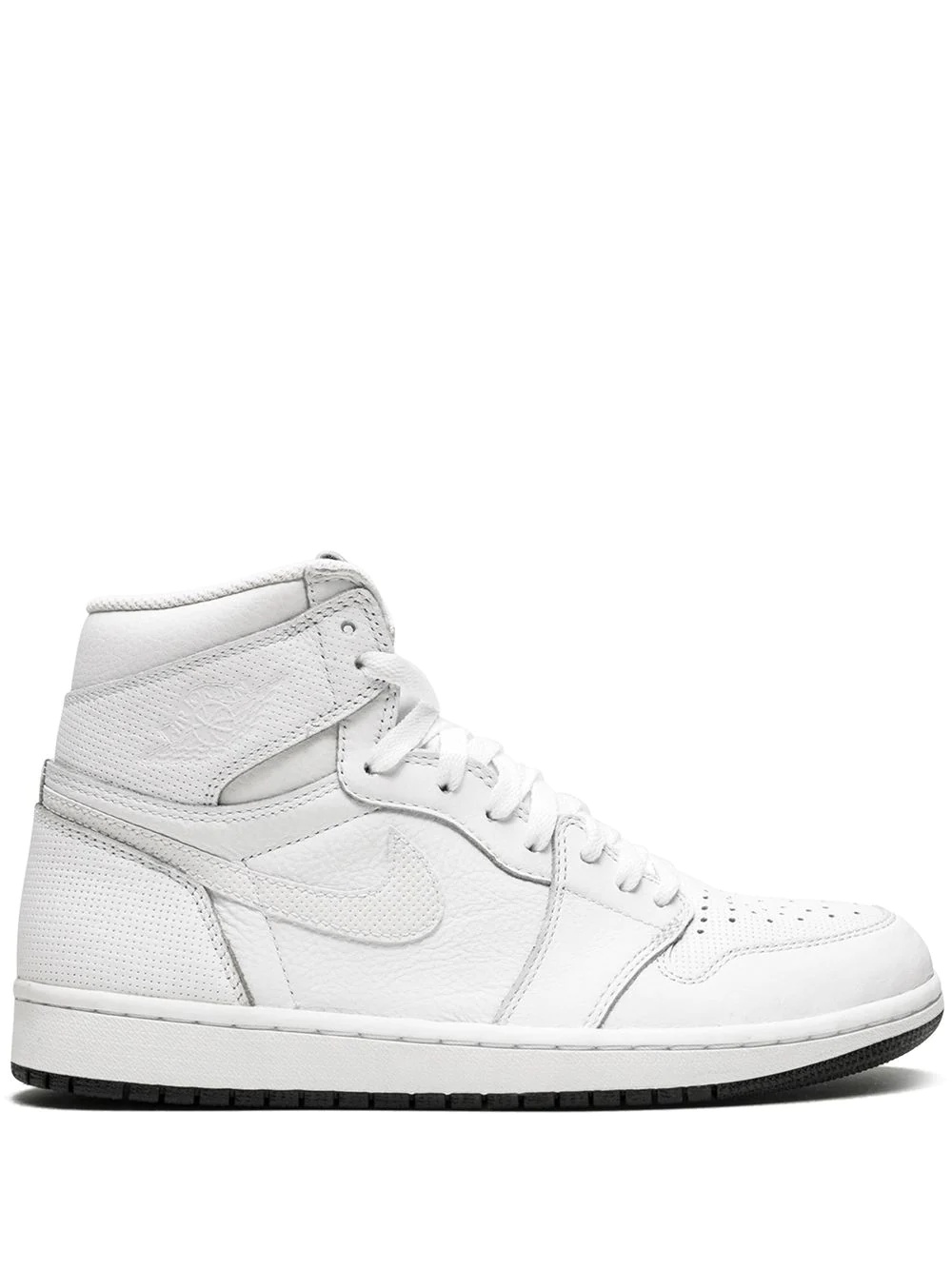 Air Jordan 1 Retro High OG "White Perforated" sneakers Feel like a basketball superstar with these white leather Air Jordan 1 Retro High OG sneakers. You'll believe you can fly. Featuring a signature Nike swoosh, stitched panels, a perforated style, an ankle length, a logo patch at the tongue, a lace-up front fastening, a round toe and a flat rubber sole. Imported Composition Calf Leather 100%