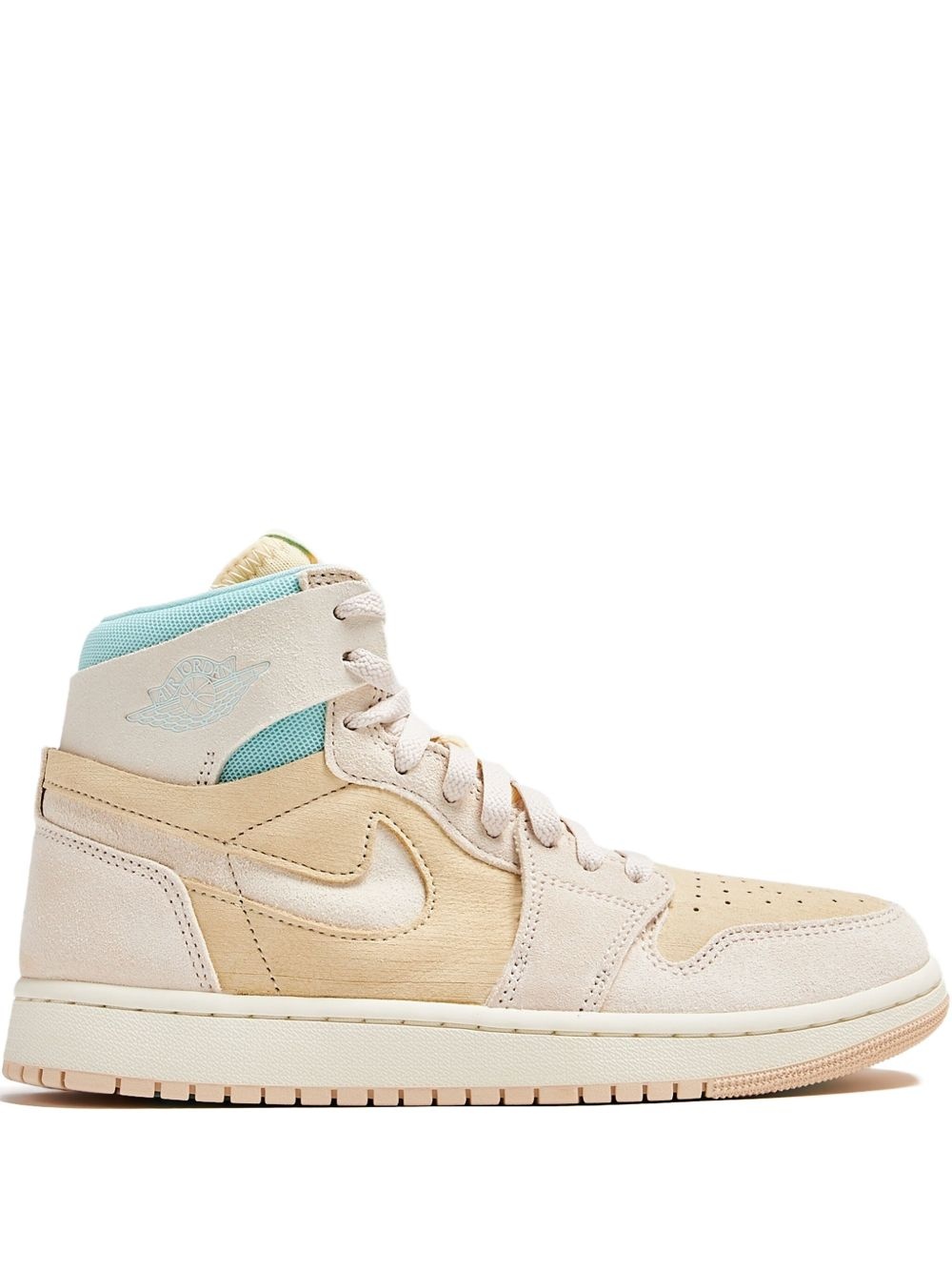 Air Jordan 1 Zoom sneakers Highlights - Beige - Contrasting aqua accents - Iconic logo detailing - Textured outsole - Lace-up closure Imported Composition Lining: Other fibres 100% Sole: Rubber 100% Outer: Leather 100%