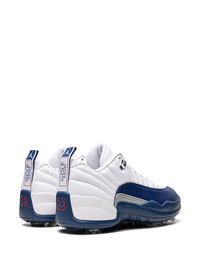 Air Jordan 12 Low Golf "French Blue" sneakers Michael Jordan's classic sneaker is back - this time, for golf. The Air Jordan 12 Low is crafted from leather, in navy blue and white, and sits atop a full-length Zoom Air unit and a hybrid outsole with integrated traction and 7 removable spikes. The signature Jumpman logo appears on the tongue, in blue, contrasting with the rest of its design. Highlights - White - Navy blue - Leather - Signature jumpman motif - Almond toe - Front lace-up fastening - Branded insole - Pull-tab at the heel - Branded insole - Soft-spike sole - These styles are supplied by a premium sneaker marketplace. stocking only the most sought-after footwear, they source and curate some of the most hard to find sneakers from around the world. Imported Composition Leather 100%