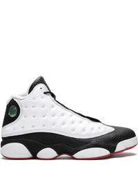 Air Jordan 13 "He Got Game" sneakers The Air Jordan 13 “He Got Game” returned during the summer of 2018 to celebrate the 20th anniversary of the classic Spike Lee film. The Air Jordans got their nickname after prominently appearing in the iconic basketball movie starring Ray Allen and Denzel Washington. This Jordan 13 in white, black, and red was also the launch colorway of Michael Jordan's thirteenth signature shoe in 1998. The shoe returned in 2018 in true-to-original form, featuring accurate materials, shape, and colors to perfectly replicate the initial 1998 release. The Air Jordan 13 "He Got Game" is easily one of the most beloved colorways of the silhouette ever, and an essential piece of any Air Jordan sneaker collection. Imported Composition Calf Leather 100%