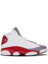 Air Jordan 13 Retro "Grey Toe" sneakers Once again back is the incredible Air Jordan 13 Retro in its OG colorway. Sometimes referred to by the 'Cherry' moniker, the shoe sports a Chicago Bulls-inspired colorway, with premium white tumbled leather construction on much of the upper. Red appears on the side panel, heel, and midsole. A black outsole completes the shoe, along with the iconic Jumpman hologram logo. Highlights - White/red - Leather - Panelled design - Signature jumpman logo patch at the tongue - Round toe - Front lace-up fastening - Chunky rubber sole - These styles are supplied by a premium sneaker marketplace. stocking only the most sought-after footwear, they source and curate some of the most hard to find sneakers from around the world. Imported Composition Calf Leather 100%