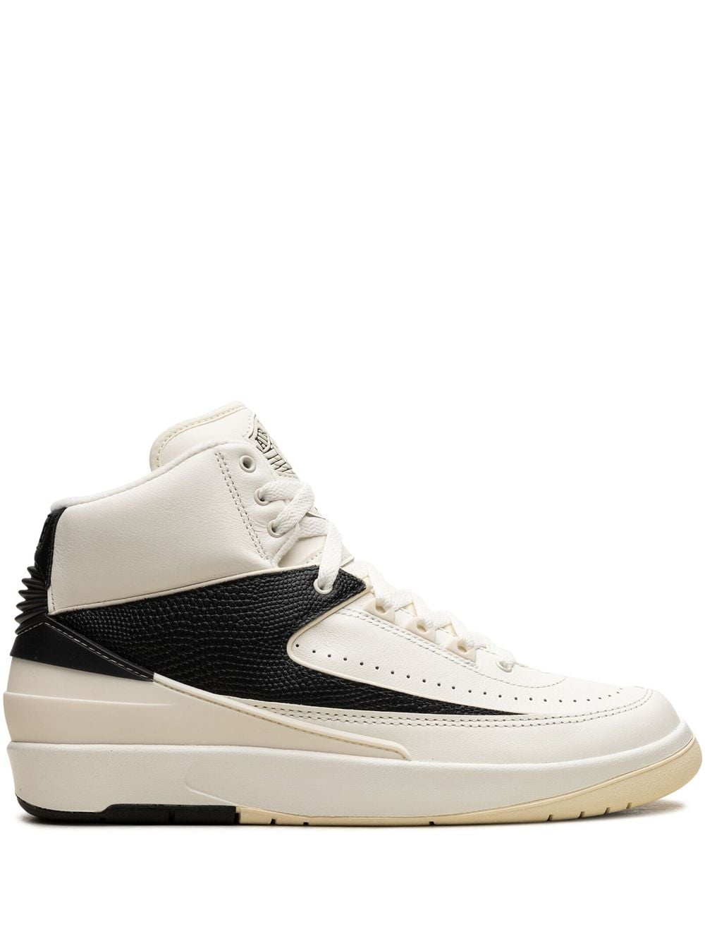 Air Jordan 2 Retro "Sail/Black" sneakers First introduced in 1996, the Air Jordan 2 silhouette draws inspiration from the shoes worn by the first players signed to the WNBA. Now, they're updated in a cream and black colourway that's crafted from supple leather and fitted with Nike Air cushion technology for added support and impact absorption. Highlights - Cream white/black - Leather - Panelled design - Heel counter - Signature air jordan wings logo - Front lace-up fastening - Perforated detailing - Round toe - Contrasting panel detail - Branded insole - Signature air cushioning - These styles are supplied by a premium and authenticated sneaker marketplace. stocking only the most sought-after footwear, they source and curate some of the most hard to find sneakers from around the world. Imported Composition Leather 100% SIZE & FIT FittingInformation This piece fits small – take one size up
