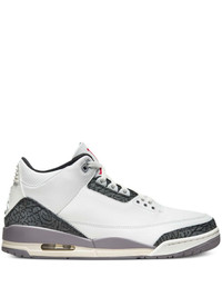 Air Jordan 3 "Cement Grey" sneakers Highlights - White - Leather - Front lace-up fastening - Branded heel counter - Elephant print - Contrasting trim - Signature jumpman motif - Logo-embroidered tongue - Round toe - Padded ankle - Branded insole - Signature exposed air unit - Rubber outsole - These styles are supplied by a premium and authenticated sneaker marketplace. stocking only the most sought-after footwear, they source and curate some of the most hard to find sneakers from around the world. Imported Composition Sole: Rubber 100% Outer: Leather 100% Lining: Fabric 100%