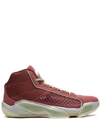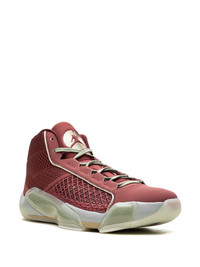Air Jordan 38 "Chinese New Year" sneakers The design of the Air Jordan 38 'Chinese New Year' takes cues from the Air Jordan 8, Zoom Strobel, and Cushion 3.0 cushioning. It features a combination of suede, mesh, and textile materials in a colour palette that includes cedar, metallic gold grain, light pumice, sail, oil green, and dark team red. The iconic Jumpman logo appears at the tongue in the middle of a gold-tone circle motif for a distinctive touch. Finally, the translucent outsole with radial herringbone traction completes the look. Highlights - Brown - Leather - Signature jumpman motif - Round toe - Front lace-up fastening - Logo-debossed tongue - Branded insole - Rubber sole - These styles are supplied by a premium and authenticated sneaker marketplace. stocking only the most sought-after footwear, they source and curate some of the most hard to find sneakers from around the world. Imported Composition Sole: Rubber 100% Lining: Fabric 100% Outer: Fabric 100%, Leather 100%