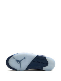 Air Jordan 5 "Georgetown" sneakers The Air Jordan 5 "Georgetown" sneakers are crafted from leather and breathable mesh panels. Sculpted to a basketball-inspired high-top silhouette, the Jumpman motif is stitched on the tongue and decorates the rubber sole underfoot. Highlights - Navy blue/black/grey - Leather - Mesh panelling - Signature jumpman motif - Round toe - Front lace-up fastening - Rubber sole - These styles are supplied by a premium sneaker marketplace. stocking only the most sought-after footwear, they source and curate some of the most hard to find sneakers from around the world. Imported Composition Leather 100%
