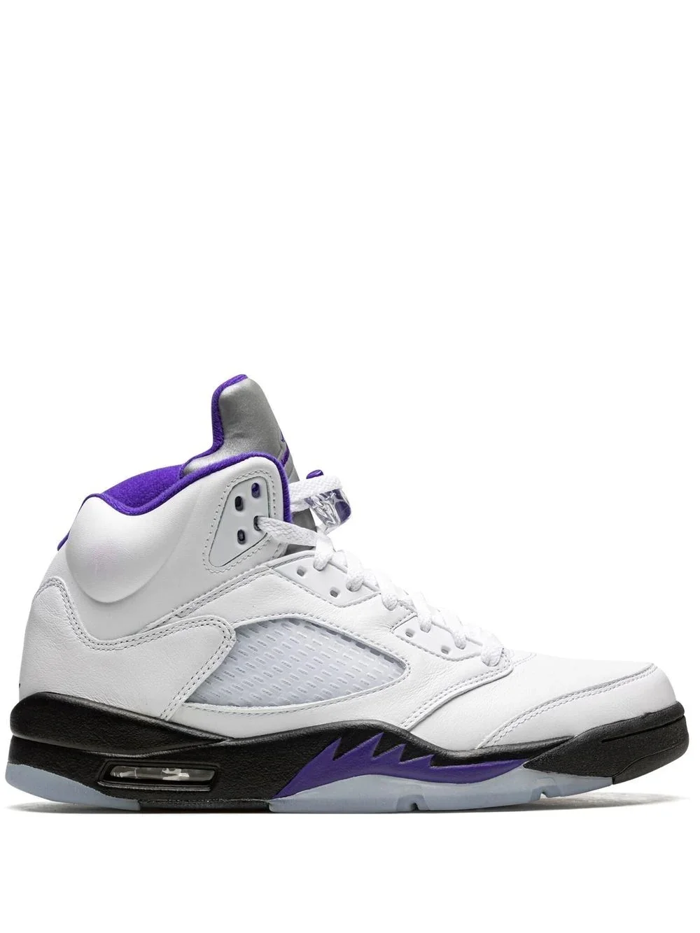 Air Jordan 5 Retro sneakers The Air Jordan 5 Retro is one of the most iconic sneakers of all time. This version of Michael Jordan's fifth signature silhouette reinvented the classic design with new colour schemes and trim details in white, black and concord purple. Highlights - White/dark concord/black - Leather - Panelled design - Branded insole - Flat rubber sole - Front lace-up fastening - Signature jumpman motif - These styles are supplied by a premium sneaker marketplace. stocking only the most sought-after footwear, they source and curate some of the most hard to find sneakers from around the world. Imported Composition Leather 100%