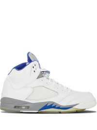 Air Jordan 5 Retro sneakers Looking for sneakers that make a splash? Go for the Air Jordan 5 Retro with its shark-tooth detail. A muted colourway brings a minimalist feel to this pair. Imported Composition Outer: Leather 100%, Fabric 100% Sole: Rubber 100% Lining: Fabric 100%