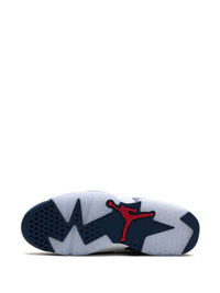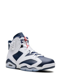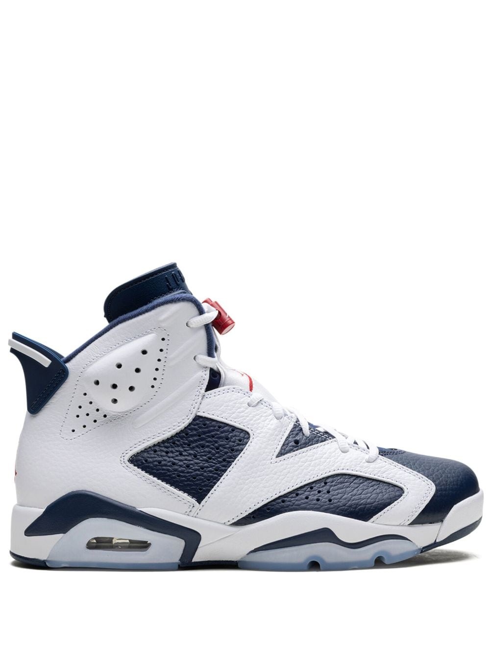 Air Jordan 6 "Olympic" sneakers Highlights - White/navy blue - Leather - Perforated detailing - Signature jumpman motif - Round toe - Front lace-up fastening - Toggle fastening - Pull-tab at the heel - Branded insole - Rubber sole - Signature exposed air unit - These styles are supplied by a premium and authenticated sneaker marketplace. stocking only the most sought-after footwear, they source and curate some of the most hard to find sneakers from around the world. Imported Composition Sole: Rubber 100% Lining: Fabric 100% Outer: Polyurethane 100%, Leather 100%