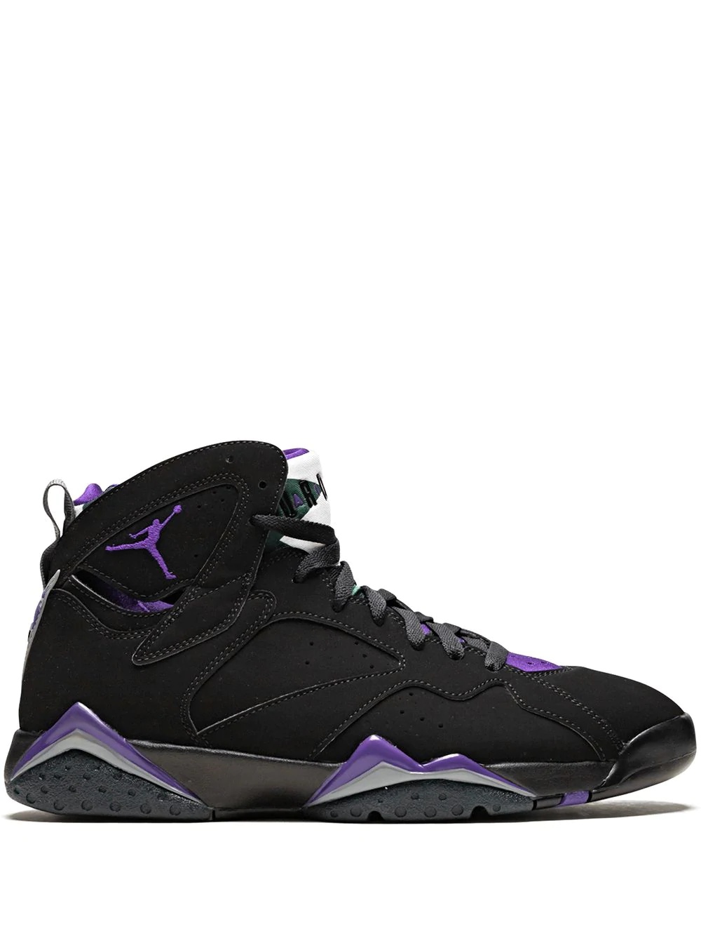 Air Jordan 7 Retro "Ray Allen" sneakers Ray Allen has been signed with Jordan Brand since 1997, which he was one of five players selected by Michael Jordan to wear Jumpman in the NBA. Back in 2002, he wore two Air Jordan 7 Player Exclusive “Home” and “Away” colourways as a member of the Milwaukee Bucks. Commemorating both his career and 2018 Hall of Fame induction, Jordan Brand will be releasing an Air Jordan 7 Ray Allen colorway in 2019 to celebrate the 23rd anniversary of his ’96 draft. Dressed in a Black, Fierce Purple, and Dark Steel Grey colour scheme. Unlike his original player exclusive, this pair will combine both Allen’s PEs from his time in Milwaukee into one. It features a Black nubuck upper instead of leather, representing the “Bucks Away” pair with Purple and Grey on the midsole, and Purple Jumpman logo on the ankle atop a Green outsole like the “Bucks Home” version. Highlights - Black and purple - Neoprene - Logo patch at the tongue - Front lace-up fastening - Round toe - Pull tab at the heel - Rubber sole - These styles are supplied by a premium sneaker marketplace. stocking only the most sought-after footwear, they source and curate some of the most hard to find sneakers from around the world. Imported Composition Other fibres 100%