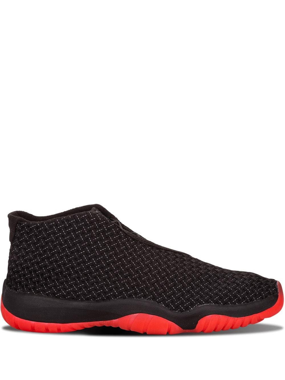 Air Jordan Future Premium infrared This premium woven edition of the Jordan Future features a black textile upper with reflective accents and a bright Infrared outsole. Featuring an ankle length, a woven design, a logo patch at the tongue, a lace-up front fastening and a ridged rubber sole. Imported Composition Sole: Rubber 100% Outer: Polyester 100% Lining: Polyester 100%
