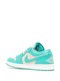 Air Jordan Low "Sanddrift/Washed Teal Sail" sneakers turquoise leather panelled design signature Swoosh logo detail signature Jumpman motif round toe front lace-up fastening branded insole ridged rubber sole Imported Composition Leather 100% SIZE & FIT FittingInformation This piece fits small – take one size up