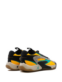 Air Jordan Luka 2 Safari "The Pitch" sneakers The Air Jordan Luka 2 Safari "The Pitch" shoes are inspired by Luka's time as a professional basketball player in Madrid and his admiration for his childhood hero's iconic footwear. In addition to the eye-catching colours, these shoes are made of strong faux leather and engineered to provide support on step-backs, lateral movements, and quick stops. Highlights - Yellow/aqua green/black - Signature jumpman motif - Contrasting panel detail - Round toe - Front lace-up fastening - Logo-embroidered tongue - Pull-tab at the tongue - Branded insole - Rubber sole - These styles are supplied by a premium and authenticated sneaker marketplace. stocking only the most sought-after footwear, they source and curate some of the most hard to find sneakers from around the world. Imported Composition Other fibres 100%