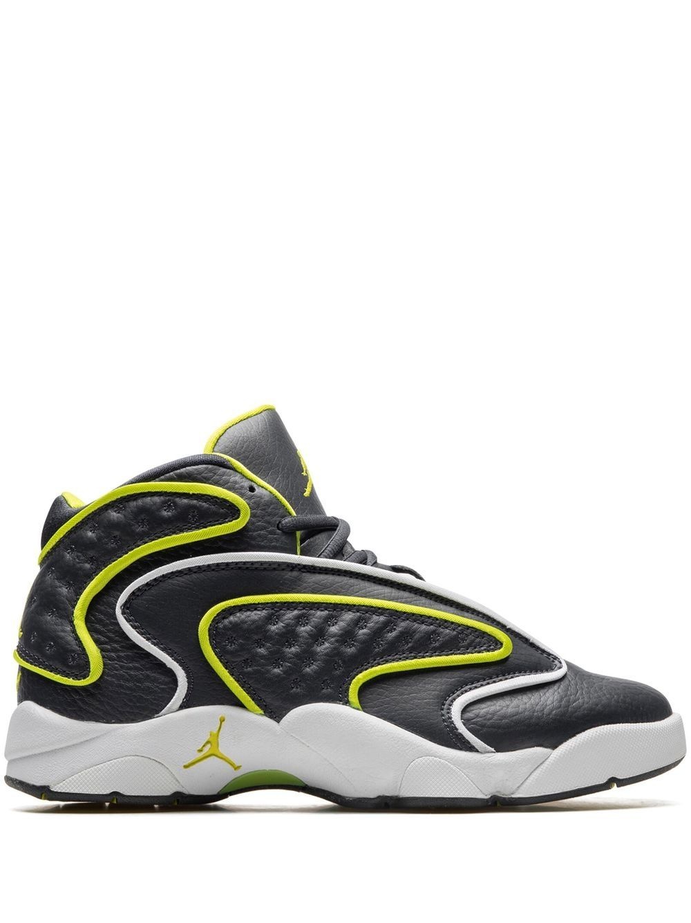 Air Jordan OG sneakers Highlights - Black - Calf leather - Signature jumpman motif - Contrasting border - Round toe - Front lace-up fastening - Ankle-length - Branded insole - Rubber sole - These styles are supplied by a premium sneaker marketplace. stocking only the most sought-after footwear, they source and curate some of the most hard to find sneakers from around the world. Imported Composition Leather 100%