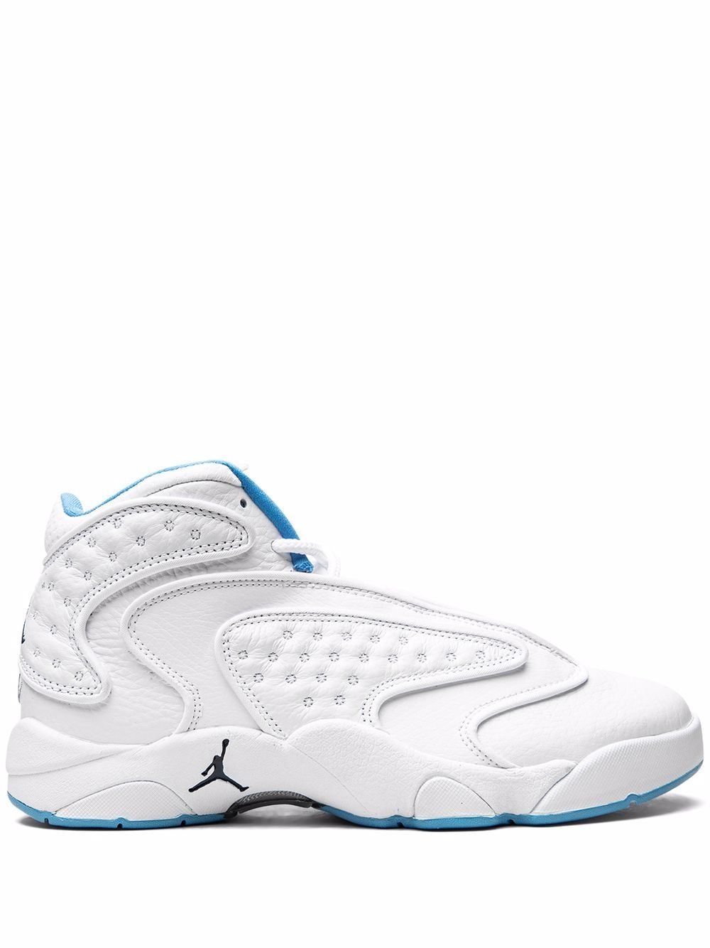 Air Jordan OG "UNC" sneakers First presented in 1985, Michael Jordan's Air Jordan silhouette has become one of the most prominent winners in sneaker history. Still true today, these Air Jordan OG sneakers ensure they feature both archival inspiration with the same signature charm they are known for. Highlights - White/midnight navy - Leather - Panelled design - Branded insole - Flat rubber sole - Front lace-up fastening - Perforated design - These styles are supplied by a premium sneaker marketplace. stocking only the most sought-after footwear, they source and curate some of the most hard to find sneakers from around the world. Imported Composition Leather 100%