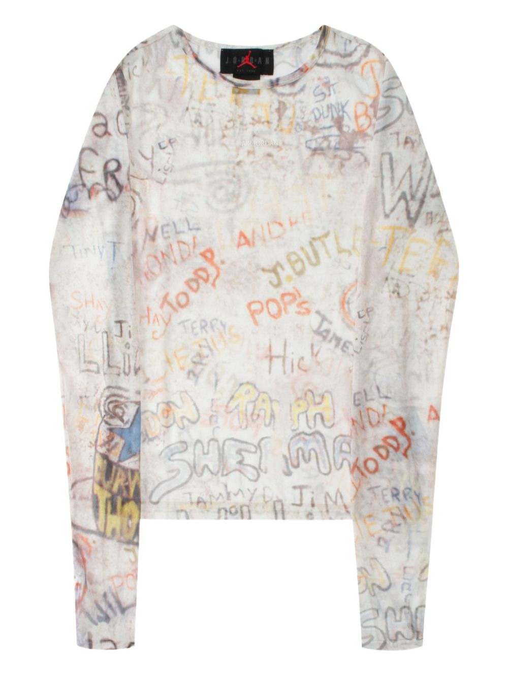graffiti-print long-sleeve top Highlights - Off-white - Graffiti print - Long sleeves - Round neck Imported Composition Fabric 100% Washing instructions Read Manufacturer Guidelines