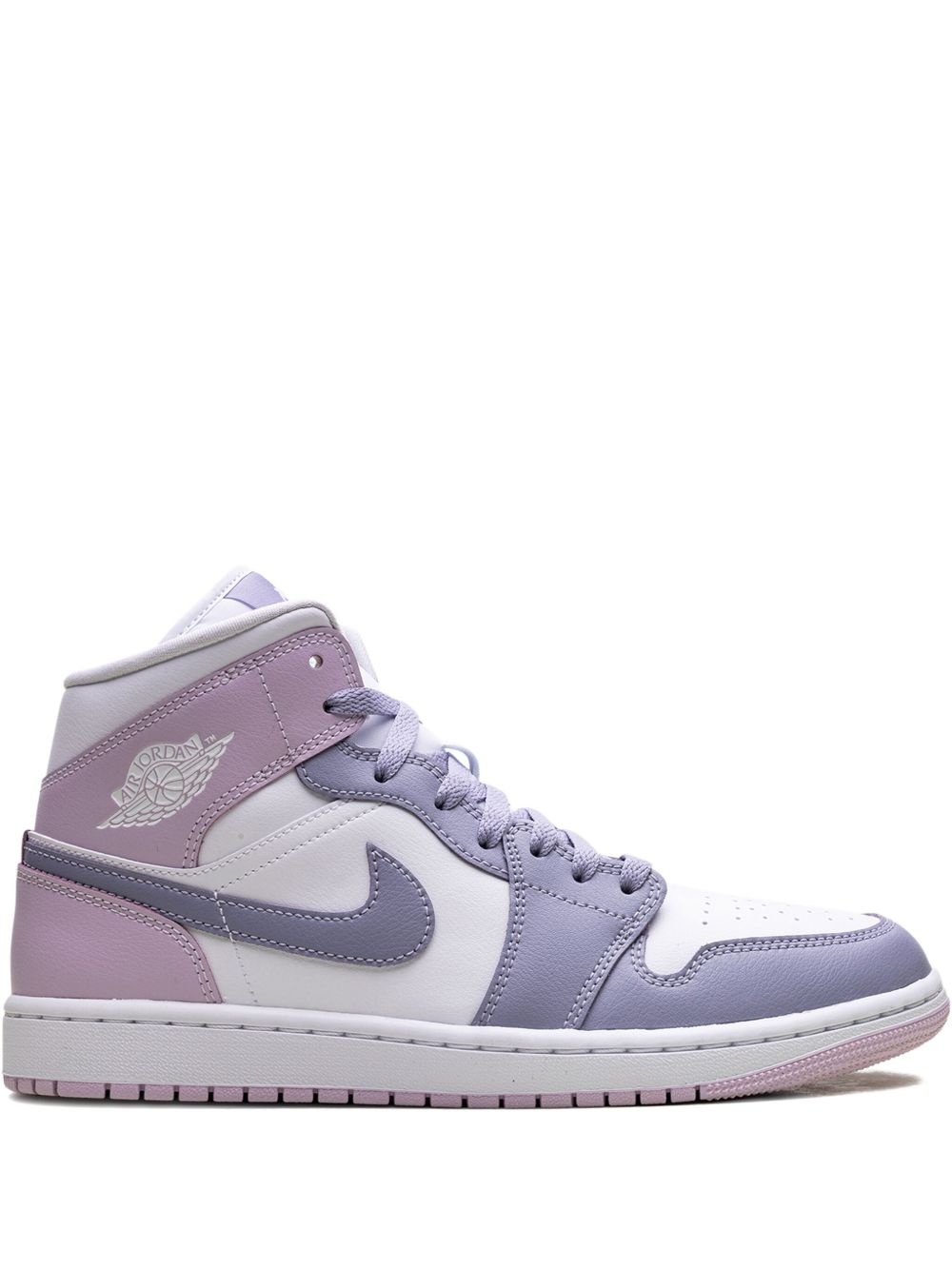 Jordan 1 Mid "Indigo Haze/White/Doll" sneakers Highlights - Light purple - Front lace-up fastening - Panelled design - Signature air jordan wings logo - Signature swoosh logo detail - Perforated toebox - Almond toe - Signature zoom air unit - Branded insole - Rubber sole - These styles are supplied by a premium and authenticated sneaker marketplace. stocking only the most sought-after footwear, they source and curate some of the most hard to find sneakers from around the world. Imported Composition Lining: Fabric 100% Outer: Calf Leather 100% Sole: Rubber 100%