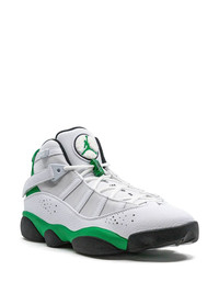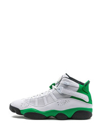 Jordan 6 Rings "Lucky Green" sneakers Michael Jordan wore seven different styles of his signature sneaker while winning six NBA championships with the Bulls - the Air Jordan 6 Rings is a tribute to each championship. Popular and easily recognizable, these high-top sneakers boast a white and bright-green colourway. Highlights - White/bright green - Leather - Signature jumpman motif - Round toe - Front lace-up fastening - Side touch-strap fastening - Branded insole - Chunky rubber sole - These styles are supplied by a premium sneaker marketplace. stocking only the most sought-after footwear, they source and curate some of the most hard to find sneakers from around the world. Imported Composition Leather 100%