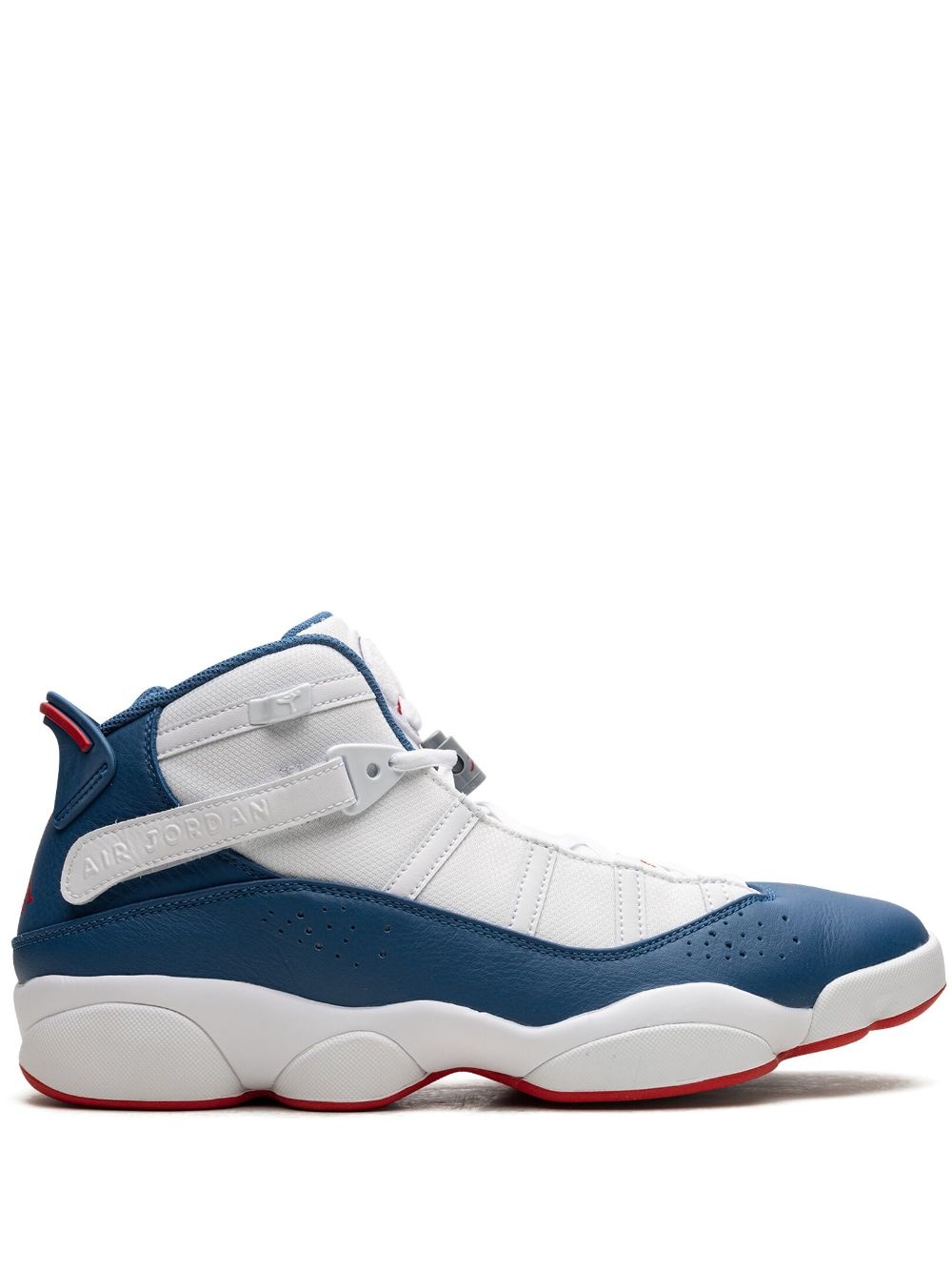 Jordan 6 Rings "True Blue" sneakers The Jordan 6 Rings "True Blue" sneakers celebrate Michael Jordan's basketball career. The lightweight silhouette is crafted from leather with signature responsive Zoom Air cushioning underneath. Highlights - White/blue/grey - Calf leather - Signature jumpman motif - Toggle fastening - Pull-tab at the heel - Signature zoom air unit - Rubber sole - These styles are supplied by a premium sneaker marketplace. stocking only the most sought-after footwear, they source and curate some of the most hard to find sneakers from around the world. Imported Composition Leather 100%