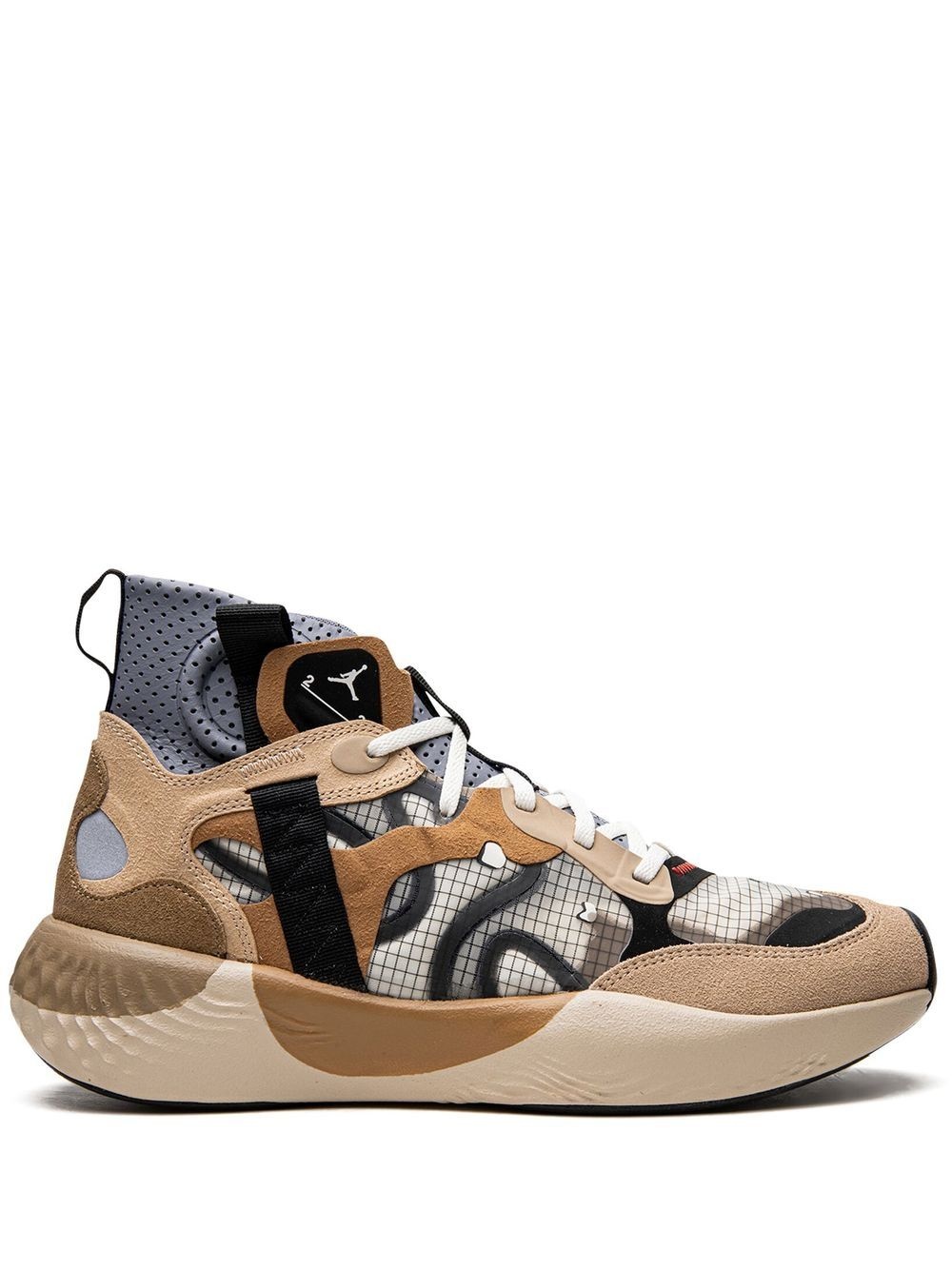 Jordan Delta 3 "hemp/sail/dark driftwood/latta" sneakers The Jordan Delta 3 SP is crafted with breathable layered ripstop and soft suede, in shades of brown. The sneaker is decorated with a grid pattern and sits atop a rubber sole for comfort. Imported Composition Suede 100%