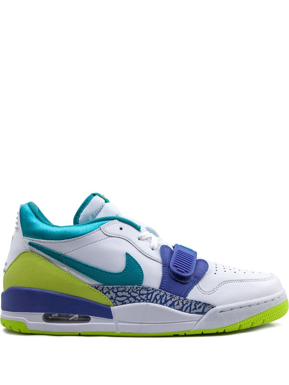 Jordan Legacy 312 Low sneakers Add a bright statement to your footwear collection. These white, ultramarine and neon yellow leather Jordan Legacy 312 Low sneakers from Jordan take on the traditional legacy silhouette, only here with a bold colourway. Lace them up and set foot out the door.l Featuring a round toe, a flat rubber sole, a branded insole, a lace fastening and a signature Nike swoosh. Imported Composition Sole: Rubber 100% Outer: Calf Leather 100% Lining: Polyester 100%