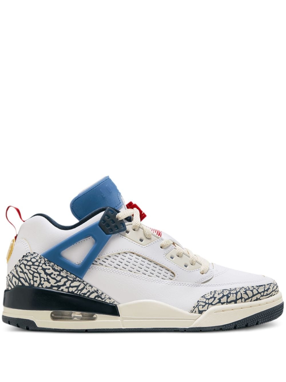Jordan Spizike "White/Armory Navy/Aegean Storm/Gym Red" sneakers Highlights - White/multicolour - Leather - Front lace-up fastening - Ridged rubber sole - Signature air max sole - Signature exposed air unit - Signature air cushioning - Pull-tab at the heel - Padded ankle - Colour-block panelled design - Mesh detailing - Cracked effect - Logo patch at the tongue - Signature jumpman motif - Round toe - These styles are supplied by a premium and authenticated sneaker marketplace. stocking only the most sought-after footwear, they source and curate some of the most hard to find sneakers from around the world. Imported Composition Sole: Rubber 100% Outer: Mesh 100%, Leather 100% Lining: Fabric 100%