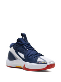 Jordan Zoom Separate "Midnight Navy/University Gold" sneakers Highlights - Navy blue - Front lace-up fastening - Branded heel counter - Pull-tab at the tongue - Logo print to the side - Almond toe - Rubber sole - These styles are supplied by a premium and authenticated sneaker marketplace. stocking only the most sought-after footwear, they source and curate some of the most hard to find sneakers from around the world. Imported Composition Outer: Polyurethane 100%, Fabric 100% Lining: Fabric 100% Sole: Rubber 100%