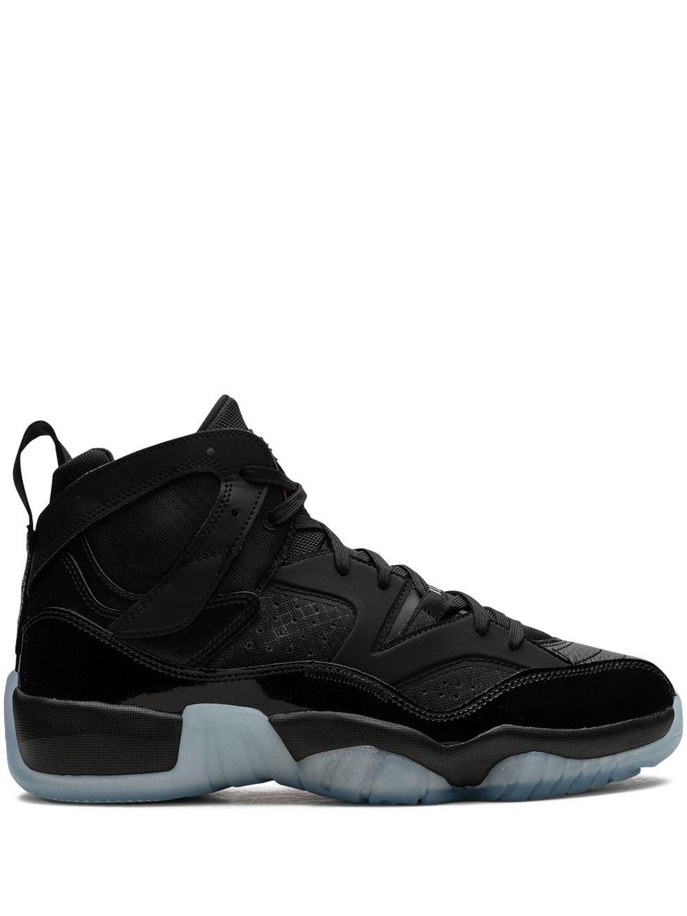 Jumpman Two Trey sneakers The Jumpman Two Trey sneakers are crafted from buttery-soft leather and breathable mesh panels. The signature Jumpman motif lands on the tongue, whilst underneath the rubber sole adds comfort and traction. Highlights - Black/white - Leather - Patent finish - Signature jumpman motif - Mesh panelling - Round toe - Front lace-up fastening - Ankle-length - Pull-tab at the heel - Rubber outsole - These styles are supplied by a premium sneaker marketplace. stocking only the most sought-after footwear, they source and curate some of the most hard to find sneakers from around the world. Imported Composition Leather 100%