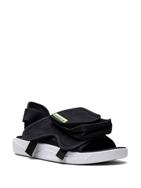 LS "Ghost Green" slides Appearing in a versatile black and white colourway, these LS "Ghost Green" slides from Jordan are characterised by a detachable flap pocket placed atop the wide strap. The upper is held together with touch strap fastenings and features an elasticated slingback strap with a slightly cushioned heel pad. Underfoot, the insole is stamped with the signature Jumpman motif, while the flat rubber outsole provides comfort. Highlights - Black/white/ghost green - Tonal stitching - Open toe - Front flap pocket - Elasticated slingback strap - Touch-strap fastening - Branded insole - Rubber sole Imported Composition Outer: Polyester 100% Sole: Rubber 100% Lining: Fabric 100%