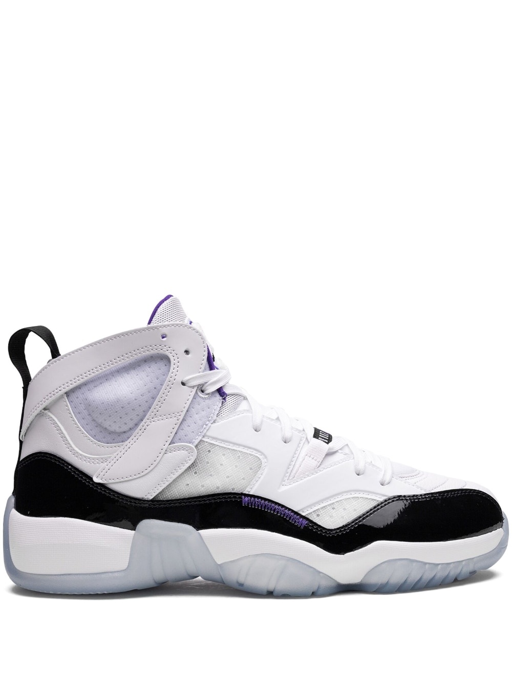 Two Trey sneakers Two Trey sneakers from JORDAN featuring white/black, purple, leather, patent finish, panelled design, signature Jumpman motif, round toe, front lace-up fastening, pull-tab at the heel and rubber sole. These styles are supplied by a premium sneaker marketplace. Stocking only the most sought-after footwear, they source and curate some of the most hard to find sneakers from around the world.. Imported Composition Leather 100%