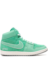 x Corporate Air Ship "Light Menta" sneakers The sneaker retailer Corporate and Jordan Brand have collaborated on a retro basketball shoe called Air Ship "Light Menta". This model features a predominantly teal-colored light green suede upper with tonal overlays on the forefoot, toe cap, and collar. A leather Swoosh on either side and classic 'Nike Air' branding on the tongue tag complete the shoe's eye-catching design. Highlights - Green - Calf leather - Signature swoosh logo detail - Embroidered motif - Round toe - Front lace-up fastening - Logo patch at the tongue - Branded insole - Rubber sole - Release date: september 8, 2023 - These styles are supplied by a premium sneaker marketplace. stocking only the most sought-after footwear, they source and curate some of the most hard to find sneakers from around the world. Imported Composition Leather 100%